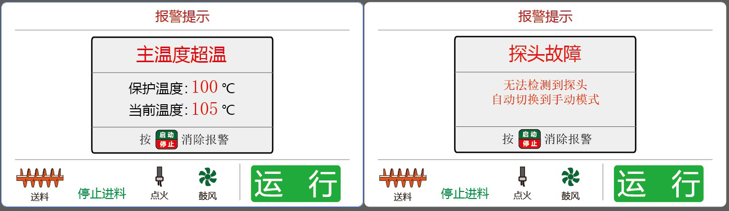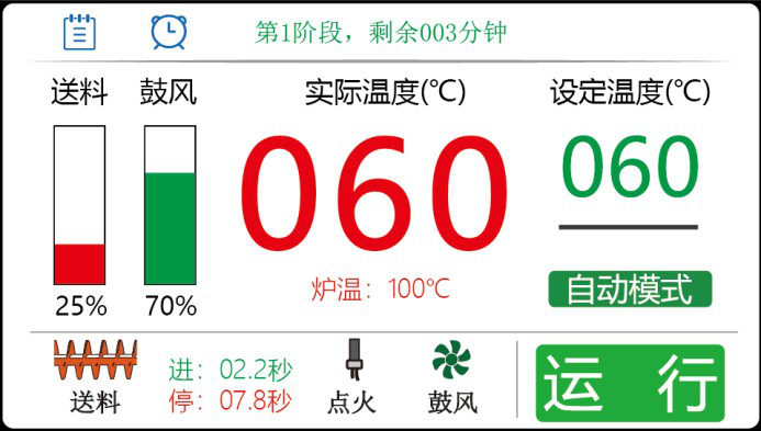 運行流程【待機】>【前吹掃】>【預送料】>【點火】>【緩沖】>【運行】>【冷卻(防回火)】;